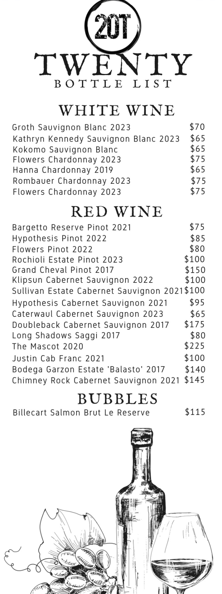 Always rotating, always fresh. Forty reasons to raise your glass at 20Twenty.
