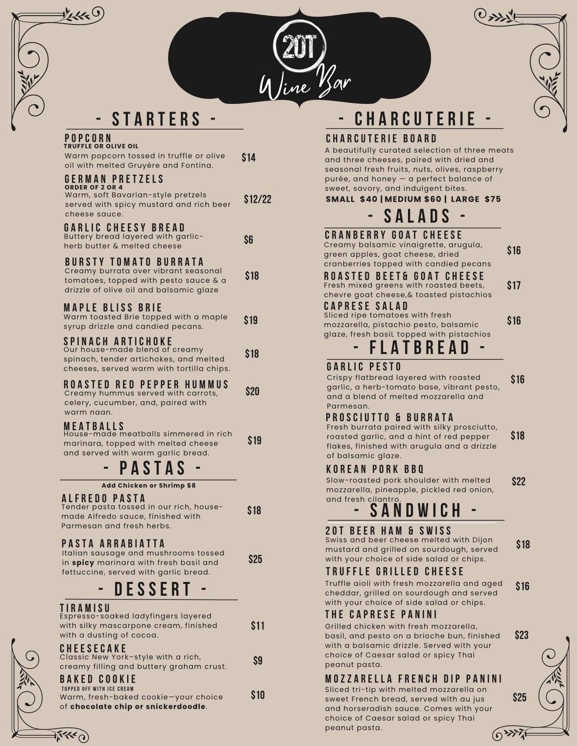 * Our wine and beer selections rotate regularly. Actual menu subject to change based on seasonal availability.